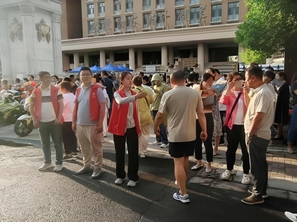 動(dòng)態(tài)響應(yīng)服務(wù),溫暖考場(chǎng)周邊。8日上午,當(dāng)一位老大爺騎著一輛載有文具的三輪車在校門口準(zhǔn)備打開手持喇叭時(shí),負(fù)責(zé)入口引導(dǎo)的志愿者立即上前,輕聲勸說其暫時(shí)關(guān)閉喇叭,并引導(dǎo)其??吭谥付▍^(qū)域。9日下午,突降陣雨,一位騎車人突然在校門口滑倒,正在執(zhí)勤的2名分公司志愿者迅速過去查看,詳細(xì)詢問駕駛?cè)藗?,小心將其扶起,并陪同至志愿服?wù)亭進(jìn)行簡(jiǎn)單處理,同時(shí)將占道的電動(dòng)車推到便道上,保障道路暢通。這些暖心瞬間,讓家長們倍感安心,也充分展現(xiàn)了志愿者們的責(zé)任與擔(dān)當(dāng)。