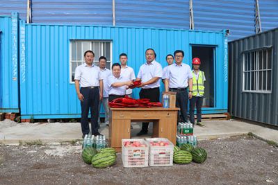 上午8點(diǎn),公司滿載茶葉、西瓜、蘋果、花露水等慰問品的商務(wù)車緩緩開進(jìn)職工生活區(qū),李懷生一邊給職工發(fā)放慰問品一邊關(guān)心地詢問他們的生活和工作情況,并叮囑他們有困難和問題及時(shí)向項(xiàng)目部反映,還要求項(xiàng)目部一定要做好職工的后勤保障,讓大家消除后顧之憂。