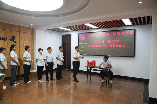 受臺(tái)風(fēng)“杜蘇芮”影響,七月中旬河北省大部出現(xiàn)強(qiáng)降雨過程,河北易縣遭遇1963年以來最大一次洪水形勢(shì)。在這樣的危急時(shí)刻,看著媒體第一時(shí)間報(bào)道受災(zāi)情況,記錄搶險(xiǎn)救災(zāi)的動(dòng)人瞬間,我們四建人也時(shí)時(shí)刻刻被救災(zāi)一線的溫情和力量感動(dòng)著。四建人想說:“還有我們!”近日,根據(jù)河北省2023年洪澇災(zāi)后重建對(duì)口幫扶工作方案,保定市易縣為對(duì)口幫扶重點(diǎn)受災(zāi)縣。按照集團(tuán)黨委關(guān)于做好2023年洪澇災(zāi)后重建對(duì)口幫扶工作部署,公司黨委、工會(huì)、團(tuán)委決定聯(lián)合開展“對(duì)口支援愛心幫扶,助力易縣災(zāi)后重建”捐款活動(dòng)。