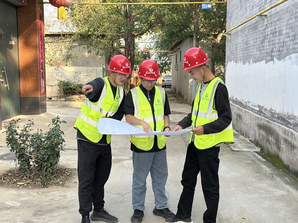 因地下管線復(fù)雜,施工中,難免會(huì)出現(xiàn)挖斷地下管道的情況,如果被挖斷的管道不能及時(shí)得到修復(fù),會(huì)影響村民用水。為最大限度減輕施工對(duì)村民生活的影響,項(xiàng)目部做實(shí)做細(xì)施工前的準(zhǔn)備工作,先聯(lián)系熟悉原敷設(shè)管道的村民,摸清摸透地下管道具體位置后再開挖,如遇敷設(shè)管線較多的部位,安排技術(shù)嫻熟的師傅人工挖掘安裝管道,同時(shí)安排人員準(zhǔn)備好搶修的材料管件,一旦挖斷管道,立即現(xiàn)場(chǎng)搶修。在同一現(xiàn)場(chǎng)施工的其它單位幾乎每天都有因耽誤村民用水被投訴的情況,元氏管網(wǎng)項(xiàng)目施工的標(biāo)段很少發(fā)生。“管溝挖得深、回填干得快,而且,很少耽誤俺們用水?!北O(jiān)理單位到現(xiàn)場(chǎng)檢查時(shí)聽到老百姓對(duì)元氏管網(wǎng)項(xiàng)目部如此評(píng)價(jià)。甲方也經(jīng)常在微信工作群夸贊該項(xiàng)目部施工的標(biāo)段是“放心工地”。