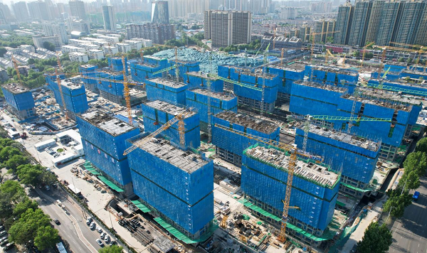 目前,項(xiàng)目36棟住宅樓主體結(jié)構(gòu)施工已完成80%,其中D區(qū)1#、2#樓已封頂,進(jìn)入二次結(jié)構(gòu)施工階段,并同步穿插機(jī)電管線及設(shè)備安裝;地下車庫(kù)施工完成55%。