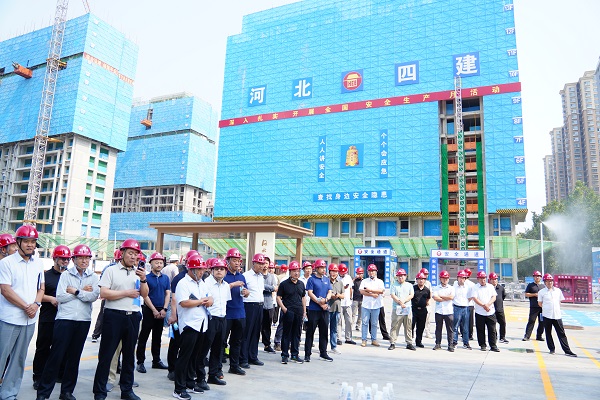 仲夏時節(jié),萬物并秀。6月12日上午,二分公司西三教城中村改造回遷項目部,迎來了由河北建工集團(tuán)總工程師李占武帶隊,各分公司生產(chǎn)經(jīng)理、安全科長、項目經(jīng)理等組成的百人觀摩團(tuán)。本次觀摩全面展現(xiàn)了項目部在智慧賦能安全生產(chǎn)領(lǐng)域的深耕成果,一系列安全文明施工標(biāo)準(zhǔn)化做法和智能化設(shè)備的實際應(yīng)用成效,贏得了觀摩人員一致好評。