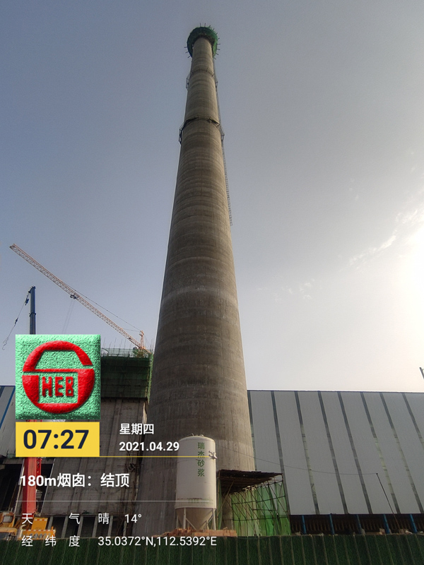 4月29日,六分公司河南金馬項(xiàng)目部完成了關(guān)鍵施工節(jié)點(diǎn)——180m煙囪土建工程順利結(jié)頂,刷新了河南省濟(jì)源市最高建(構(gòu))筑物紀(jì)錄。