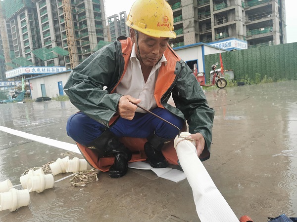 7月17日至21日,河南省遭遇極端強(qiáng)降雨天氣。五分公司禹州海盛湖濱豪庭項(xiàng)目針對(duì)此次強(qiáng)降雨,積極行動(dòng),一方面?zhèn)浜梅姥窜嚒撍?、砂石料等搶險(xiǎn)物資,應(yīng)對(duì)汛情;另一方面加大夜間巡邏頻次,在車庫、基坑等低洼部位24小時(shí)不間斷抽水,防止積水,保證了項(xiàng)目安全。