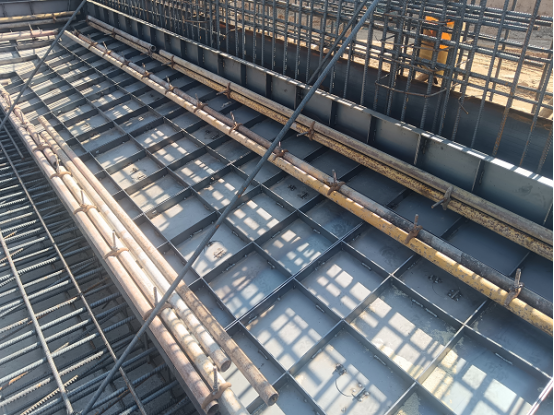 在石家莊西南地表水廠項目清水池工程的實際應用中,該技術(shù)成效尤為顯著。質(zhì)量方面,腋角尺寸精度誤差嚴格控制在±2mm內(nèi),混凝土密實度達98%,外觀質(zhì)量一次驗收合格率100%;效率方面,模板支設效率提升30%,單項工序直接節(jié)約工期16天,人工投入減少25%;經(jīng)濟與安全環(huán)保方面,模板可重復周轉(zhuǎn)利用降低施工成本,同時消除木模板切割作業(yè)的安全風險,減少建筑垃圾產(chǎn)生量60%。